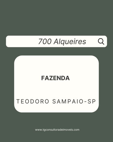 Área Agrícola à Venda – 700 Alqueires | Teodoro Sampaio/SP | Alto Potencial Produtivo | Renda Mensal. Excelente oportunidade para investidores do agronegócio! Área com 700 alqueires localizada no Distrito de Planalto Sul, município de Teodoro Sampaio/SP, com acesso facilitado a apenas 12 km do asfalto e a 25 km de Plan Sul. Destaques da propriedade: - 80% da área plantada com cana-de-açúcar - Renda mensal entre R$ 180 mil a R$ 200 mil - Contrato vigente com a Usina Atvos – Mirante do Paranapanema, até dezembro de 2028 (contrato antigo, com boas condições) - Documentação 100% regularizada - Área planíssima, com excelente aproveitamento para soja, laranja, amendoim e outros cultivos - Recursos hídricos disponíveis para irrigação por pivô central Infraestrutura: - Sede estruturada - Casas para funcionários - Curral - Pista de pouso desativada - Barracão para maquinários Localização estratégica: - 50 km da Usina Beira Rio (Paranazão) - Próxima à Represa Sérgio Mota - Região com vocação agrícola consolidada e acesso facilitado a polos industriais e logísticos Valor de venda: R$ 120.000.000,00 Área ideal para expansão agrícola, projetos empresariais ou como ativo patrimonial com geração de renda imediata. Entre em contato para mais informações e agende uma visita técnica.