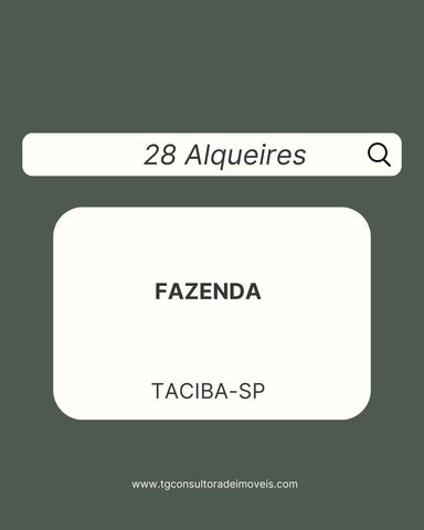 Área Agrícola à Venda – 28 Alqueires em Taciba/SP | Renda Mensal com Cana | Excelente oportunidade de investimento em área agrícola altamente produtiva no município de Taciba/SP, região estratégica do interior paulista. Características da Propriedade: - 28 alqueires de área total - 95% plantados com cana-de-açúcar - Área plana, ideal para mecanização - Renda mensal estimada entre R$ 9.000 e R$ 10.000 - Produção média: 33 toneladas por alqueire - Rio na divisa da propriedade - Sem benfeitorias - Fornecimento para a Usina Cocal Localização privilegiada: - Município vizinho a Anhumas, Narandiba e Nantes - Apenas 25 km de Pirapozinho, principal cidade da região Valor: R$ 170.000,00 por alqueire Ideal para investidores do agronegócio, usinas, produtores ou quem busca diversificação de ativos com retorno garantido. Entre em contato para mais informações e agende uma visita técnica.