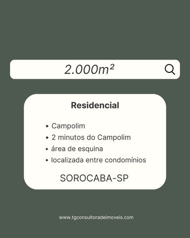 🏗️ Terreno de Esquina no Campolim – Sorocaba/SP Localização privilegiada, na mesma rua do Mercadão Campolim, próximo ao Shopping Iguatemi Esplanada. Terreno de esquina, ideal para empreendimento de apartamentos com possibilidade de mall comercial no térreo. 📍 Região nobre e de alto fluxo, com excelente valorização e infraestrutura completa.