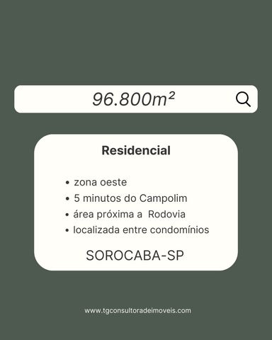 Excelente oportunidade de investimento! Área com 4 alqueires (24.200 m²), localizada atrás do Makro Atacadista e a apenas 5 minutos do Campolim, com acesso facilitado pela Rodovia Raposo Tavares. 📍 Região em constante valorização 🏗️ Ideal para empreendimentos residenciais, logísticos ou comerciais 🚗 Fácil acesso às principais vias da cidade 💰 R$ 5.808.000,00