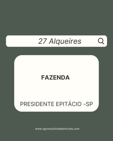 Excelente Área Rural à Venda – 27 Alqueires | Presidente Epitácio/SP | Altíssimo Potencial Agrícola Ótima oportunidade de investimento em área rural altamente produtiva, localizada em Presidente Epitácio/SP, a apenas 1 km da Rodovia Raposo Tavares, com fácil acesso e logística privilegiada. Características da Propriedade: - 27 alqueires de área total - Área planíssima, com 90% de aproveitamento útil - 2 alqueires de reserva legal, conforme exigências ambientais - Sem benfeitorias – ideal para implantação de projetos personalizados - Solo de excelente qualidade, atualmente utilizada para pecuária, com grande potencial para agricultura, especialmente soja Destaques: - Localização estratégica - Alto rendimento potencial - Oportunidade para produtores, investidores ou expansão agrícola Invista com segurança e visão de futuro. Agende sua visita e conheça o potencial desta área exclusiva.