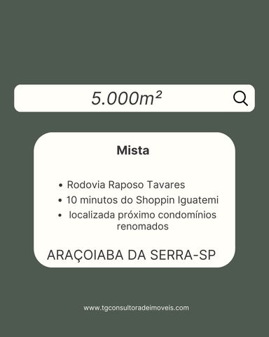 Aproveite esta incrível oportunidade de investimento comercial e industrial! Localizado a apenas 1km após o pedágio, no sentido de Araçoiaba, este imóvel de 40m x 125m está situado às margens da Rodovia Raposo Tavares, uma das vias de acesso mais importantes da região. Com uma localização estratégica e altamente visível, este terreno é ideal para quem deseja expandir seus negócios ou iniciar um novo empreendimento. Com uma área total de 5.000m², este imóvel oferece um amplo espaço para a construção de galpões, lojas, escritórios ou qualquer outro tipo de estabelecimento comercial ou industrial. Sua proximidade com a rodovia facilita o acesso de clientes e fornecedores, tornando-o ainda mais atrativo para quem busca um local de fácil acesso e grande visibilidade. Não deixe escapar essa oportunidade única de adquirir um imóvel com grande potencial em uma localização privilegiada. Entre em contato conosco e agende uma visita para explorar todas as possibilidades que este terreno pode oferecer para o sucesso do seu negócio. Invista no seu futuro e garanta o crescimento da sua empresa!