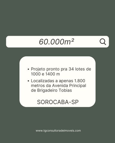 Retorno Garantido com Alto Potencial de Valorização Projeto pronto pra 34 lotes de 1000 e 1400 m 2 áreas juntas totalizando quase 60 mil metros Ambas com escritura e IPTU Localizadas a 1800m da avenida principal de Brigadeiro Tobias Venha conhecer essa grande oportunidade de investimento!