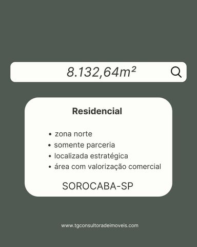 Área com 8.132,64 m², excelente para empreendimento residencial. Localização estratégica na Zona Norte de Sorocaba, região em constante valorização, com fácil acesso a comércios, escolas e principais vias da cidade. O proprietário aceita somente parceria. Excelente oportunidade para construtoras e incorporadoras!