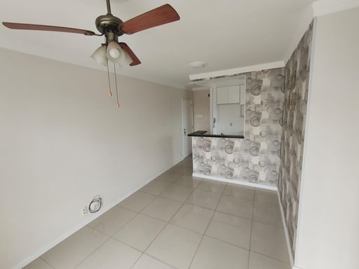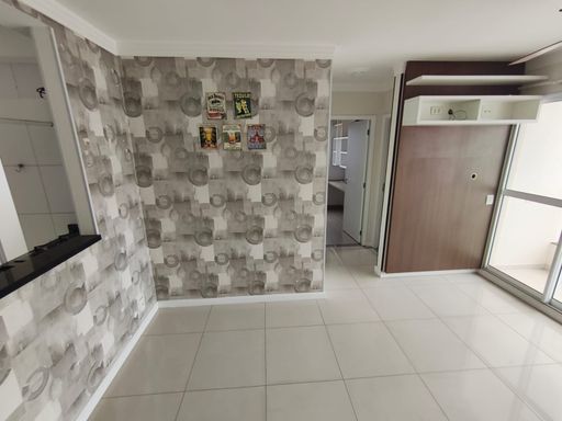 01 sala: piso frio, dois ambientes, papel de parede, ventilador de teto e porta de vidro de correr (03 folhas) sacada: tela de proteção