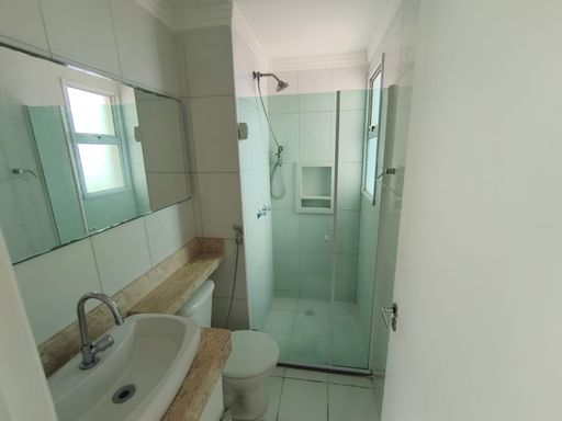 01 banheiro social: piso frio, azulejo: parcial, pia: granito estendida com cuba externa, gabinete, vaso sanitário com caixa acoplada, ducha higiênica, box blindex, chuveiro, gesso: moldura e janela de vidro com esquadria em alumínio