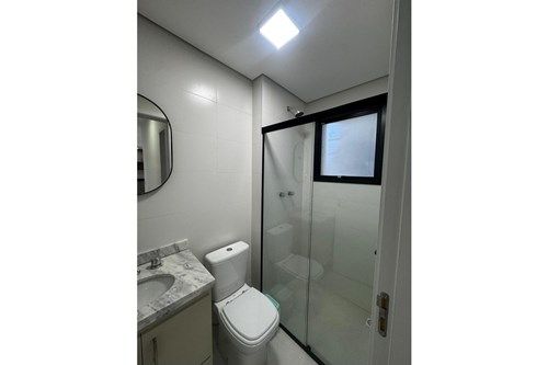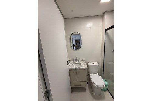 • Banheiros com armários, chuveiro, espelhos, box e tampo em MDF