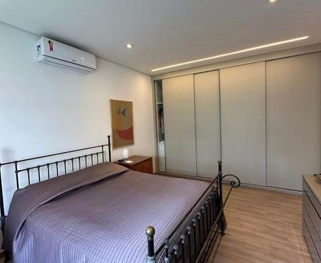 Possui três amplas suítes, elegantes salas de estar e jantar, cozinha planejada com balcão e móveis sob medida em todos os ambientes. O projeto privilegia a integração dos espaços e a iluminação natural, proporcionando uma atmosfera acolhedora e contemporânea.