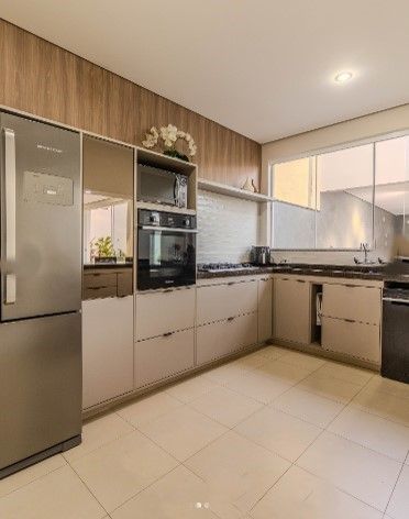 Cozinha ampla com um lindo balcão no estilo península