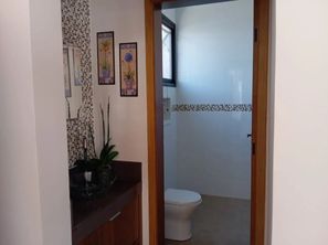 Banheiro social e lavabo com acabamentos impecáveis.