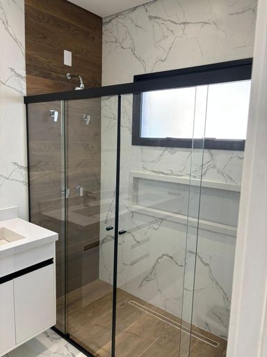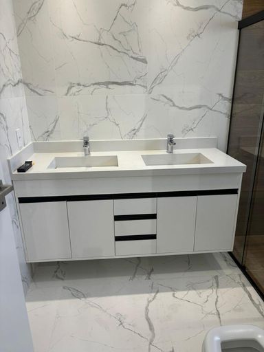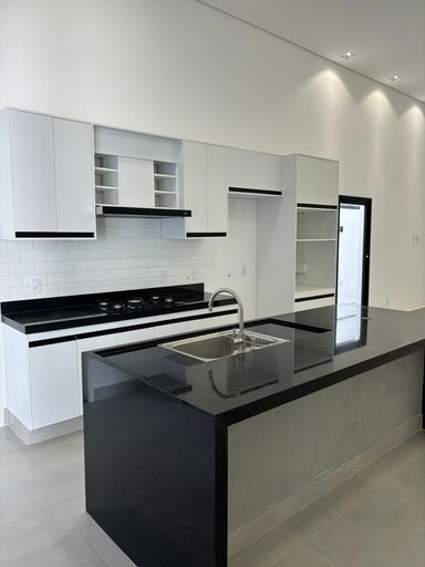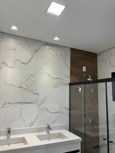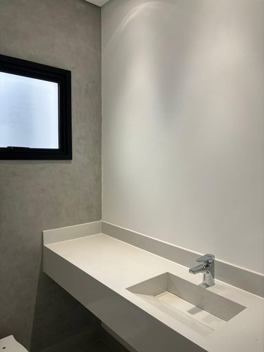 3 Suítes com janelas automatizadas com tela mosqueteira, metais Deca, duchas Deca autolimpantes com pressurizador e aquecimento solar, vasos sanitários com válvula hidro, nichos e pias em branco prime com gabinetes planejados e instalação para ar condicionado.