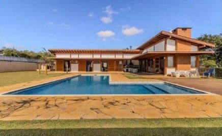 Encante-se com esta belíssima casa térrea, com 3 suítes, em um amplo terreno plano de 1.440 m², de frente para o lago do condomínio.