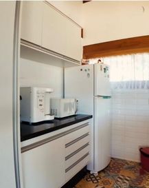 O projeto valoriza integração e conforto: cozinha e living integrados, home privativo, armários planejados e ar condicionado em todos os ambientes.