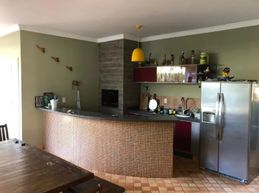 São 3 suites, suite master com closet e hidromassagem, sala de TV, sala de estar, sala de jantar, lareira, escritório, brinquedo-teca, lavabo, banheiro de serviço, espaço gourmet, piscina, aquecimento solar, sistema de aquecimento elétrico, solar e gás , sistema pressurizado de água, armários nos quartos e banheiro, cozinha modulada Formaplas, despensa, canil, horta, ávores frutíferas. Casa localizada em rua sem saída .