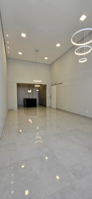 • Sala com pé-direito alto, integrada à sala de jantar e cozinha