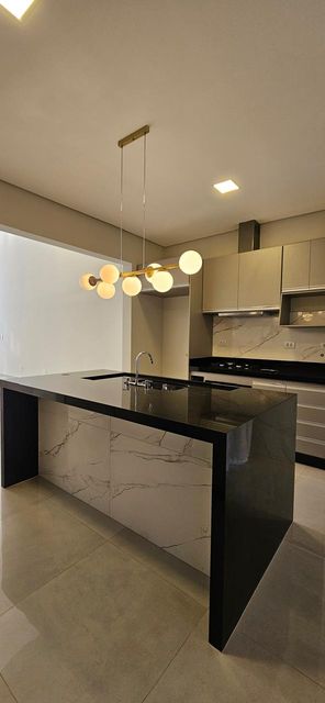 • Cozinha completa com armários, forno a gás, cooktop, coifa e churrasqueira