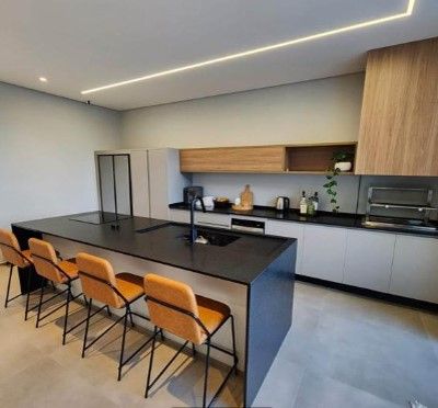Sala, cozinha e suíte Master equipadas com ar-condicionado.