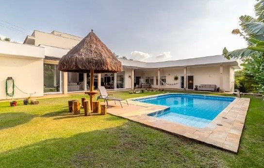 Situada em um lote privilegiado de esquina, em condomínio de altíssimo padrão com terrenos de no mínimo 1.000 m², esta casa é um verdadeiro refúgio de bem-estar e estilo.