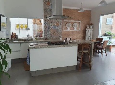 São 3 dormitórios com armários planejados, sendo 1 suíte e 2 quartos de solteiro com banheiro americano, além de lavabo. Sala com pé-direito elevado de 5 metros, proporcionando sofisticação e ótima ventilação natural. Cozinha com dois ambientes, equipada com armários planejados, integrada à área social.