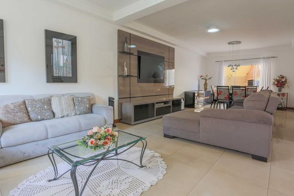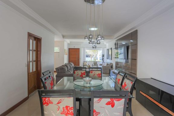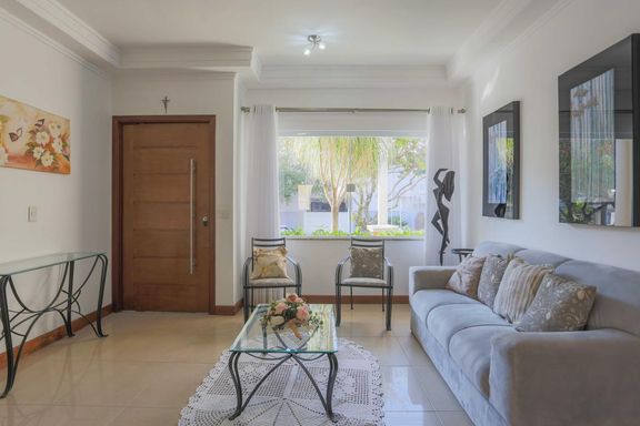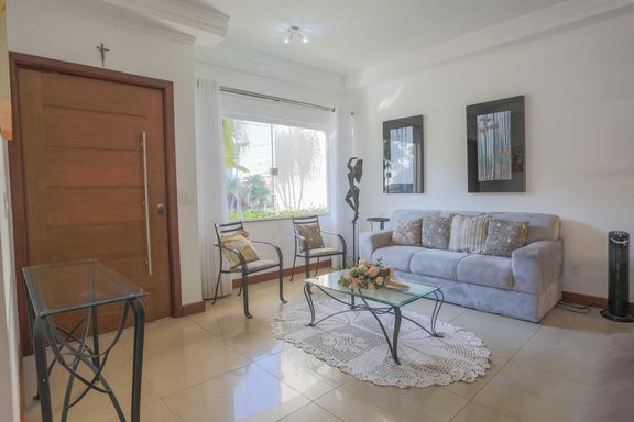 O imóvel conta ainda com garagem para 4 veículos, sendo 2 vagas cobertas, e um agradável jardim frontal, que valoriza ainda mais a fachada.