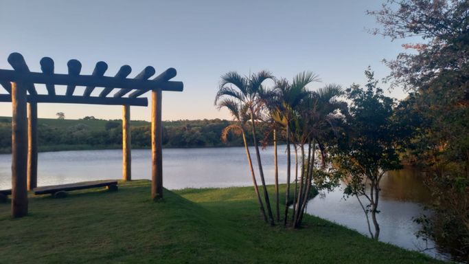 O condomínio oferece estrutura completa, com pesqueiro, trilhas na mata e um grande lago, proporcionando lazer e tranquilidade em meio à natureza.