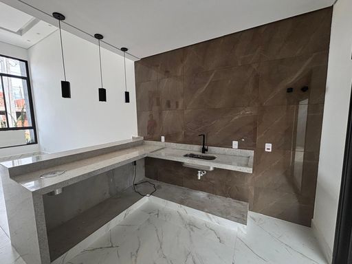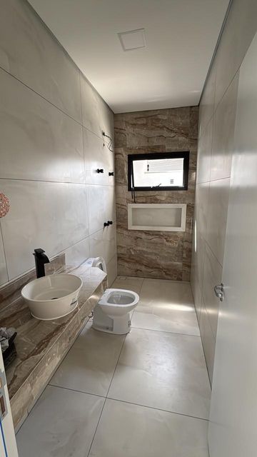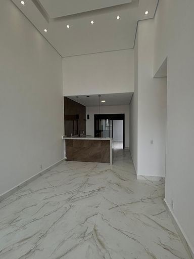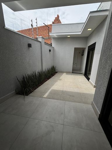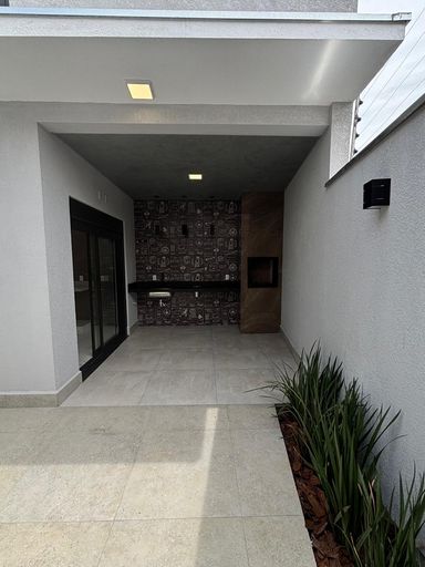 São três dormitórios , sendo uma suíte , sala dois ambientes ampla e com pé direito duplo , cozinha com balcão em granito , espaço gourmet com churrasqueira revestida em porcelanato , wc social , área de serviço , quintal , duas vagas descobertas na garagem .Infra estrutura pronta pra ar condicionado nos 3 dormitórios e sala , infra estrutura para água quente , iluminação toda em led .
