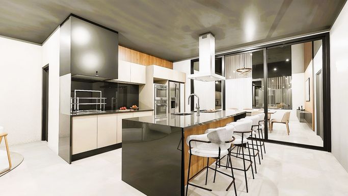 Casa térrea em construção no Alphaville Nova Esplanada 4, com projeto moderno, ambientes totalmente integrados e acabamento de alto padrão.