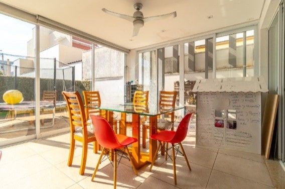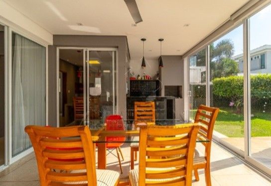 Espaçosa área gourmet envidraçada com churrasqueira