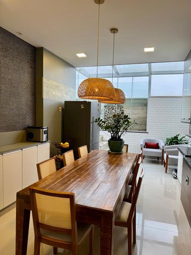 Na área social, os ambientes são amplos e bem integrados, com sala para 3 ambientes — estar, TV e jantar — criando uma atmosfera elegante e acolhedora. O imóvel conta ainda com lavabo, escritório e uma cozinha espaçosa, equipada com armários planejados e excelente área de apoio.