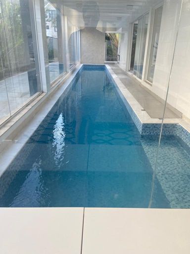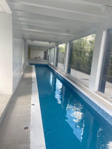O complexo aquático é verdadeiramente espetacular, featuring duas piscinas distintas: uma piscina raia coberta e climatizada, que permite o uso durante todo o ano, independentemente das condições climáticas, e uma deslumbrante piscina descoberta ornamentada com uma cascata natural, criando um ambiente de resort particular.