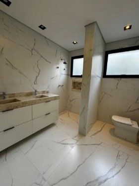 Casa térrea com 326,39 m² de área construída, com 3 suítes, todas com closet. Escritório com possibilidade de virar a quarta suíte.