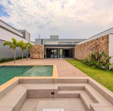 Cozinha integrada, espaço gourmet com varanda, piscina com prainha e preparação para aquecimento, lounge externo com lareira, amplo espaço de quintal, infraestrutura para energia fotovoltaica, ponto para carro elétrico, acabamento impecável de alto padrão.