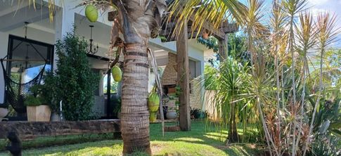 Um generoso terreno de esquina de 1.100 m² oferece um repertório botânico de árvores, palmeiras imperiais, palmeiras triangulos, rabo de raposa, Palmeura Canária, pândalo, fênix e ipês, bem como uma diversidade de frutíferas
