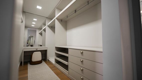 Conta com 4 suítes com closet sendo 1 master com closet, em piso de madeira maciça.