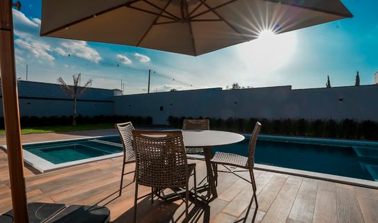 Conta com lavabo, cozinha toda equipada, despensa, área de serviço, despejo, banheiro externo, com uma bela piscina com prainha e spa