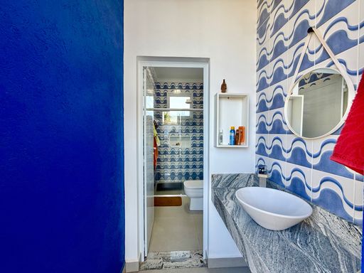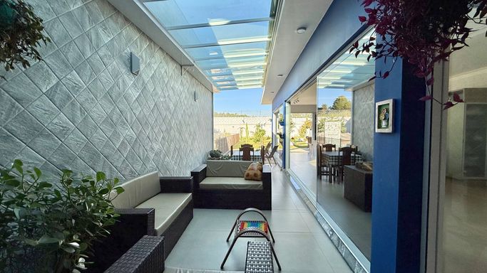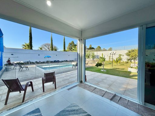 Varanda, piscina, sauna e um banheiro completo na área de lazer