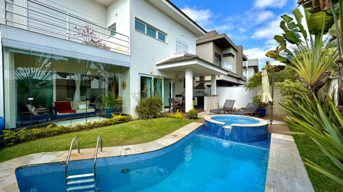 Que tal se apaixonar por esta casa em condomínio no Tamboré, em Santana de Parnaíba? Com 4 excelentes suítes, e 8 banheiros, este imóvel esbanja conforto e elegância em seus 400 m² de área construída.