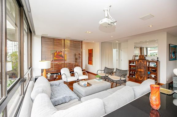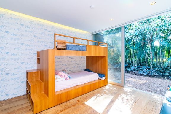 Possui 6 suítes amplas, todas com janelas piso-teto, banheiros com detalhes em pedra natural e excelente iluminação.