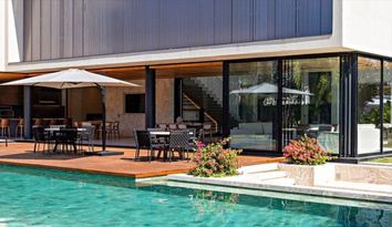 O imóvel conta com seis suítes, incluindo uma ampla suíte master com banheira, e áreas sociais de grande imponência, com salas de estar e jantar de pé-direito duplo, além de home cinema para entretenimento completo.