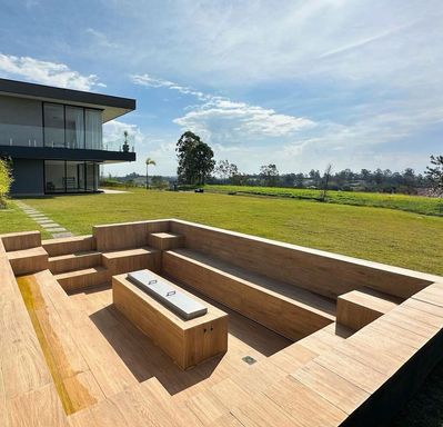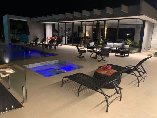 · Área externa com piscina de borda infinita, SPA, academia e fire pit