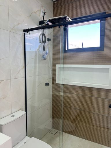 À medida que você avança, a casa se conecta de forma fluida. A sala de jantar convida a longas conversas sob uma iluminação quente e acolhedora, enquanto a cozinha entrega funcionalidade real para o dia a dia. Armários em MDF com acabamento premium, bancadas em São Gabriel Preto, cuba gourmet Tramontina e iluminação bem distribuída criam um ambiente moderno e prático. A área gourmet amplia essa experiência, com churrasqueira equipada, integração total ao exterior e uma porta de vidro que transforma encontros em momentos memoráveis.