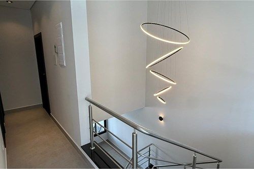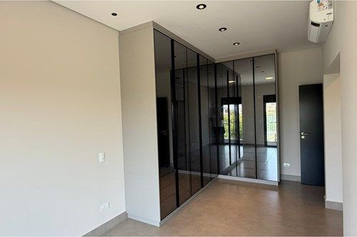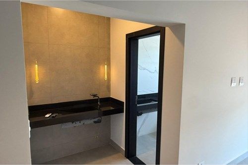 São 4 suítes amplas, todas com portas automatizadas e vista privilegiada para o parque. A sala com pé-direito duplo e a cozinha americana planejada integram-se harmoniosamente, criando um ambiente elegante e acolhedor.