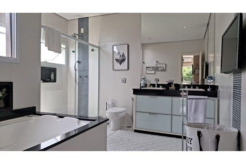 A casa conta ainda com 7 banheiros e 5 lavabos, garantindo conforto e praticidade em todos os ambientes.