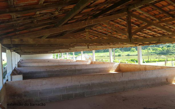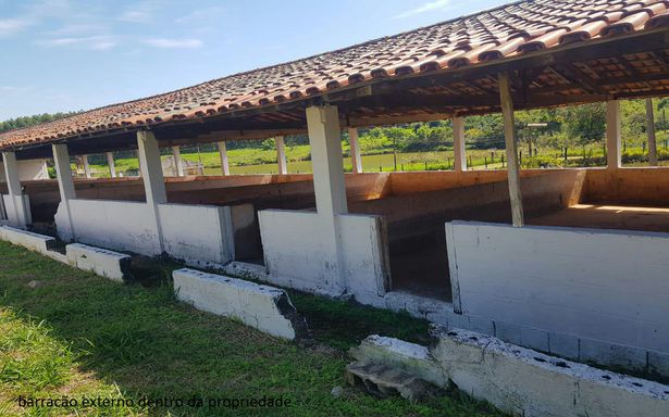 Barracões com telhado (1.500 m²) – estrutura em Peroba e Ipê, com câmara fria funcional