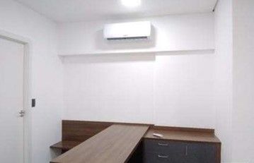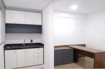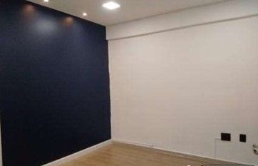 Sala com 45 m², piso laminado, dois banheiros, uma vaga de garagem com sistema de valet e dois aparelhos de ar-condicionado.