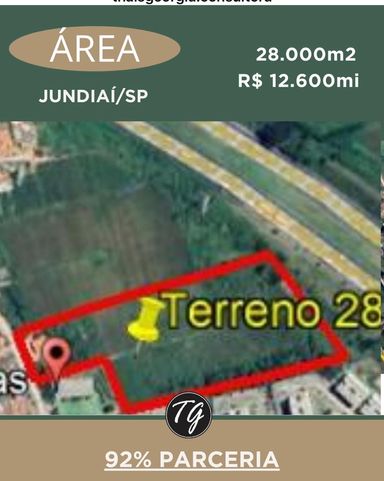 Área à Venda emJundiaí - Oportunidade de Incorporação° Localização estratégica em Jundiaí Área total: 28.000 m2 § Valor: R$ 450,00/m2* Total à vista: R$ 12.600.000,00 Condições alternativas: Aporte inicial de R$ 1.000.000,00 Saldo em parceria física ou financeira Informações do Terreno Documentação em ordem, pronta para negociação Diretrizes de infraestrutura: água, esgoto e gás disponíveis Projeto pode contemplar apartamentos de 45 a 55 m'* Altura permitida: até 8 pavimentos Potencial de Incorporação Ideal para construtoras e incorporadoras que buscam expandir em uma das cidades mais promissoras do interior paulista. Terreno pronto para desenvolvimento residencial de médio padrão,