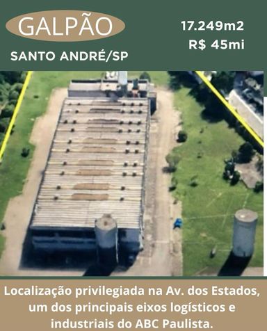 Excelente Galpão à Venda Av. dos Estados, Vila Metalúrgica, Santo André/SP Terreno: 17.249 m? Galpão Construído: 3.080 m Valor de Venda: R$ 45.000.000,00 Destaques do Imóvel Localização privilegiada na Av. dos Estados, um dos principais eixos logísticos e industriais do ABC Paulista. Galpão com excelente estrutura e área construída de 3.080 m'. Amplo terreno de 17.249 m', possibilitando expansão e novos projetos. Região consolidada, com fácil acesso às principais vias de ligação a São Paulo, Rodoanel e rodovias estratégicas. Ideal para indústrias, centros logísticos, atacadistas ou grandes operações comerciais.